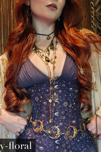 - Corset Design Features: Indigo And Gold Astronomy Print